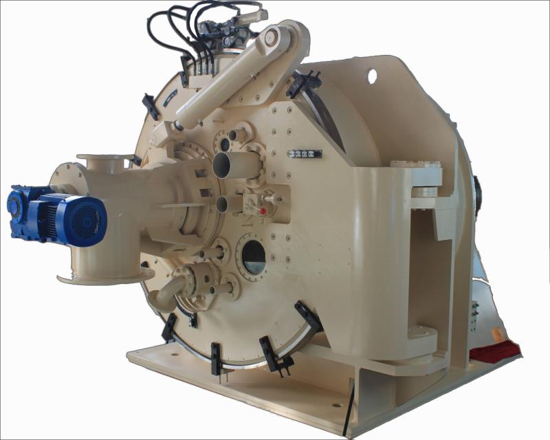 臥式刮刀離心機是用于0.25~2mm顆粒末煤脫水的一種高效,新型設備。該設備處理量大,與立式離心機相比,同樣篩籃尺寸及能耗的情況下,產能提高40%,并且產品的水分低于14%。設備設計結構緊湊,占用空間小,安裝和維護都極為方便,是一種可以顯著提高粉煤回收率的理想末煤脫水設備