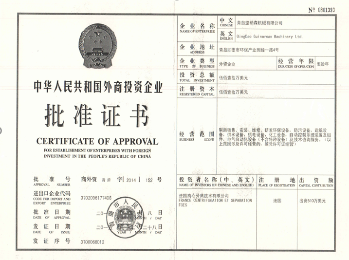 外商投資企業(yè)批準(zhǔn)證書(shū)