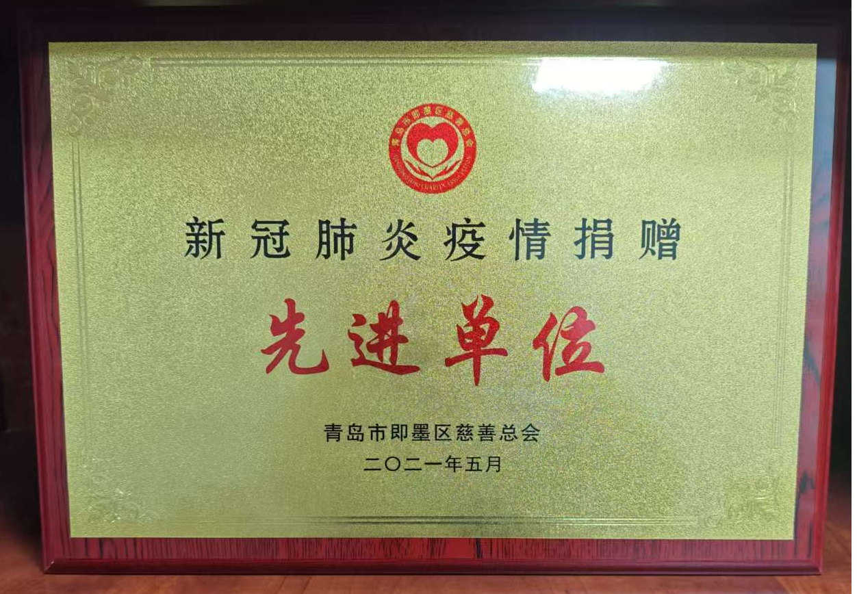 堅納森(青島)機械有限公司榮獲“新冠肺炎疫情捐贈先進單位”榮譽稱號